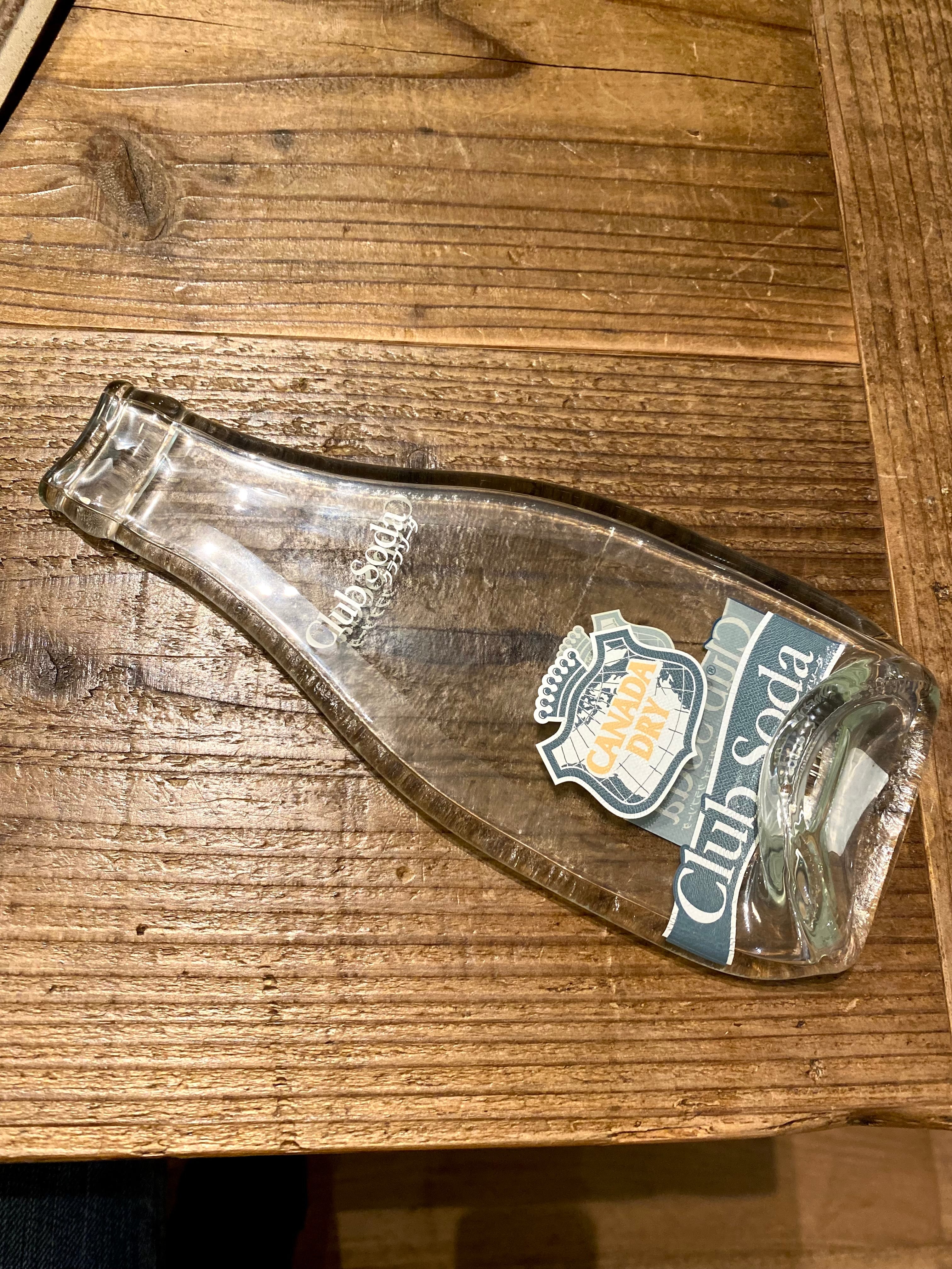 クラブソーダの瓶をぺったんこにプレス加工したユニークな作品です!
